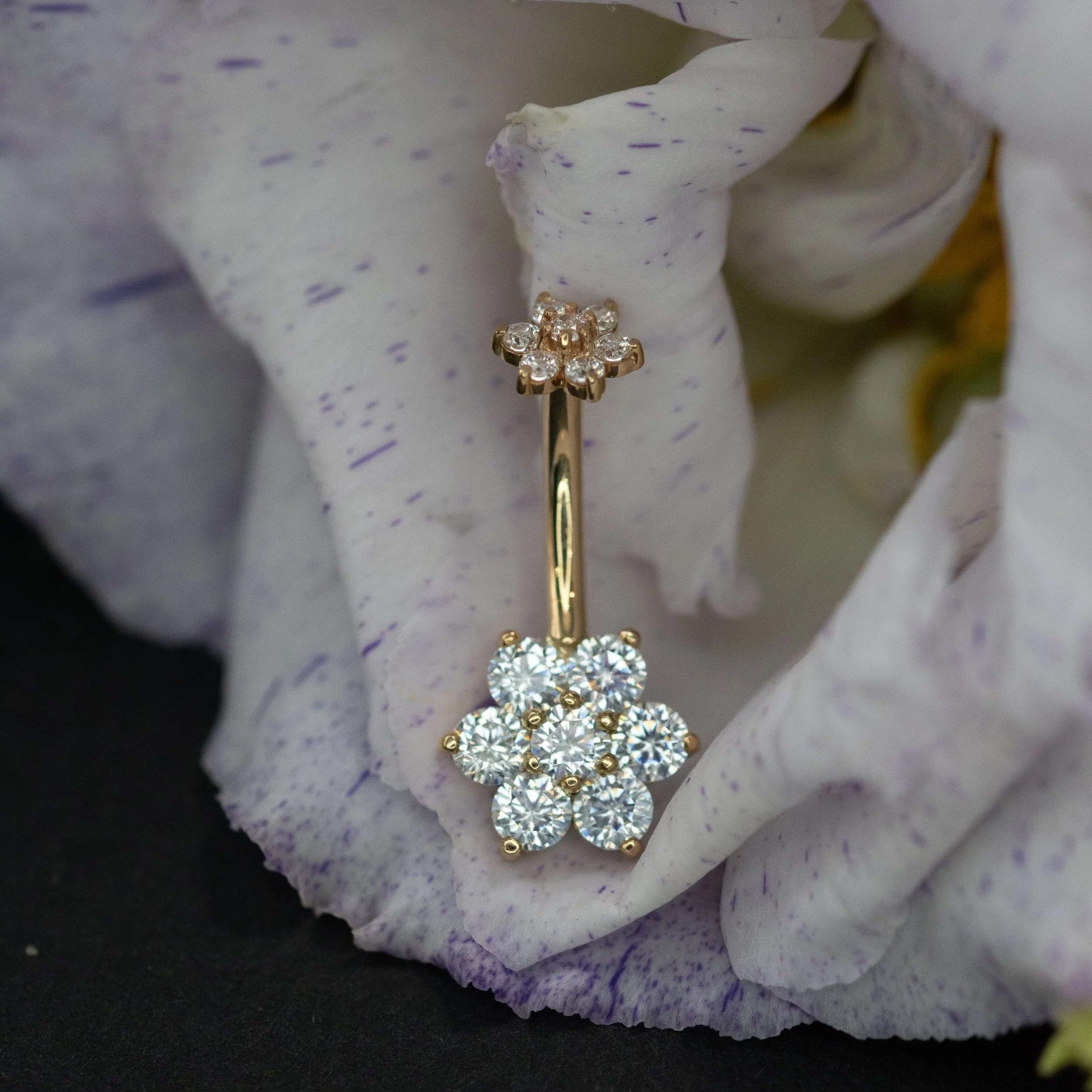 You’re an individual and your jewelry can be too. Here at Arcadia Professional Body Piercing, many of the companies that we order from can customize your piece to make it explicitly yours. From the color of the metal to the color of the gemstones, you can choose the perfect combination to show off your personal preferences! We love placing custom orders for our clients, from something cute and dainty like a solid gold hummingbird to an industrial barbell measured just for your ear specifically with crown set bullet-cut gemstones on the ends to the Supernova pictured to the right. Whatever you can come up with, we can get it.