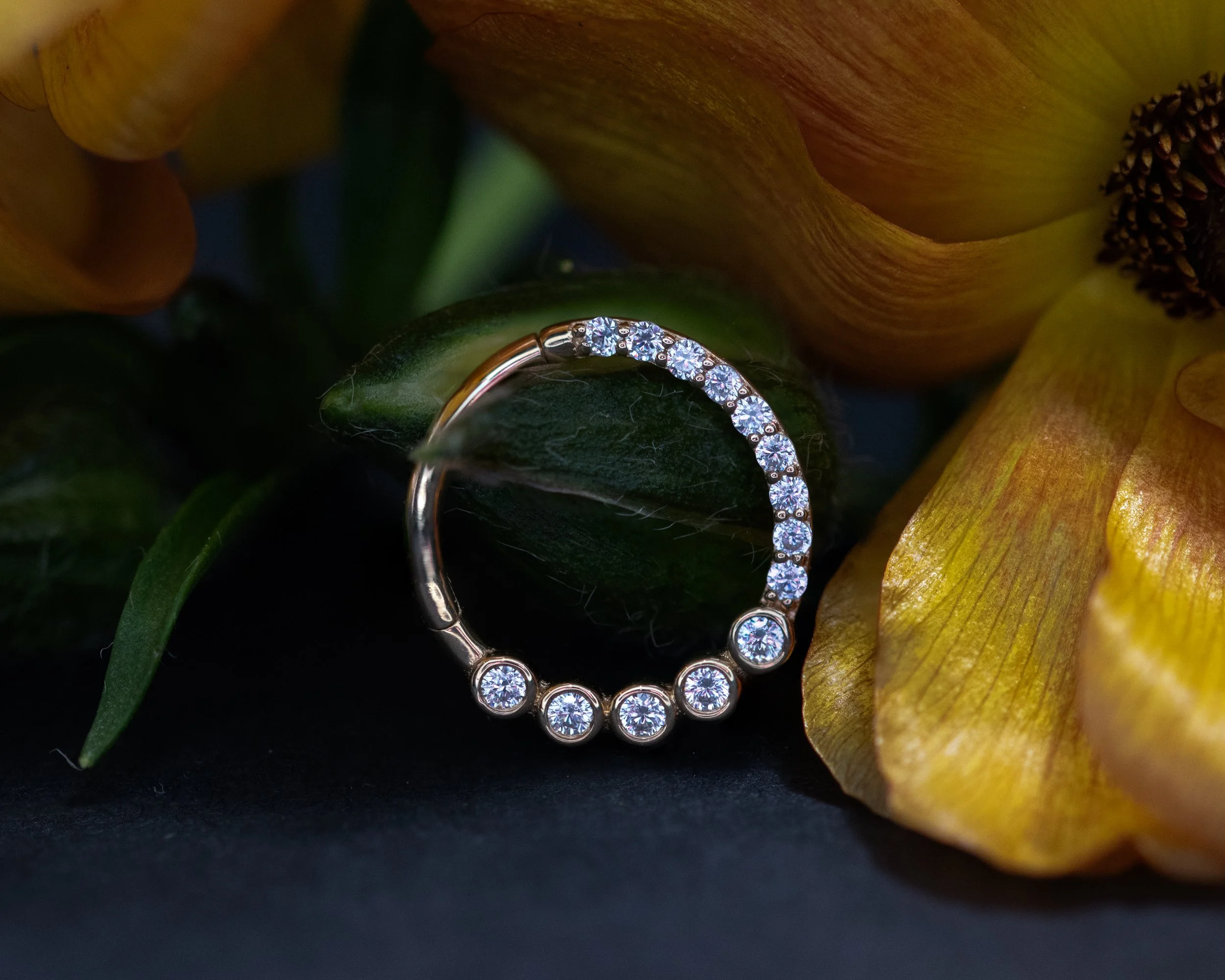 Ear piercing curation is also something that is available at Arcadia. We love to work with our clients to pick the most optimal piece of jewelry to fit individual anatomy. In a consult with our piercers about a curation, jewelry options will be discussed, along with ideal placement. Our clients choose their favorite pieces of jewelry and our piercers find the best location for it.